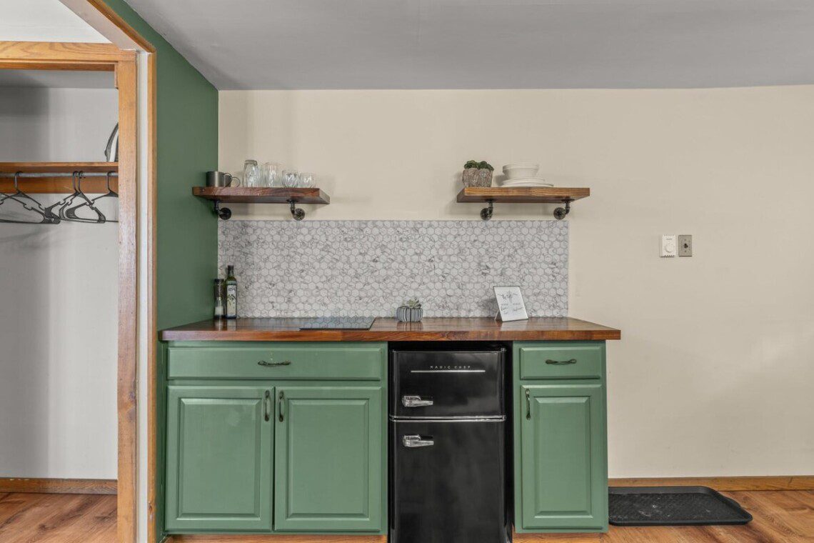 The brand new kitchenette is well appointed with a deep sink and plenty of space to prepare a meal
