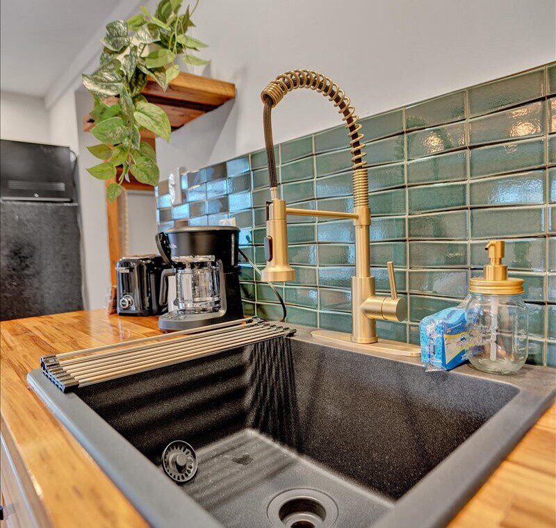 The brand new kitchenette is well appointed with a deep sink and plenty of space to prepare a meal