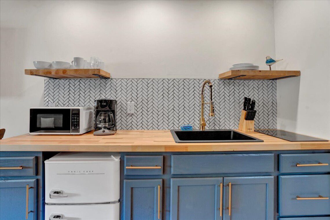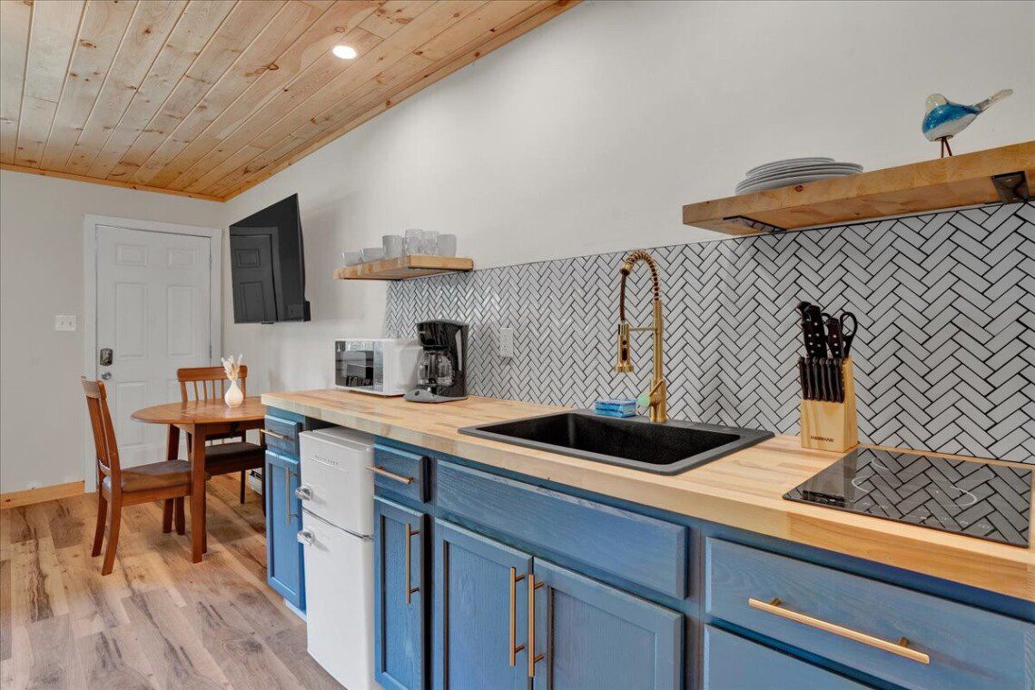 The brand new kitchenette is well appointed with a deep sink and plenty of space to prepare a meal