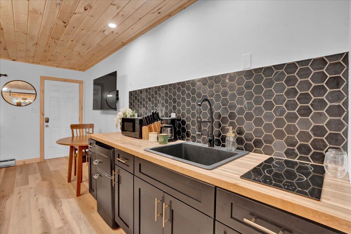 The brand new kitchenette is well appointed with a deep sink and plenty of space to prepare a meal