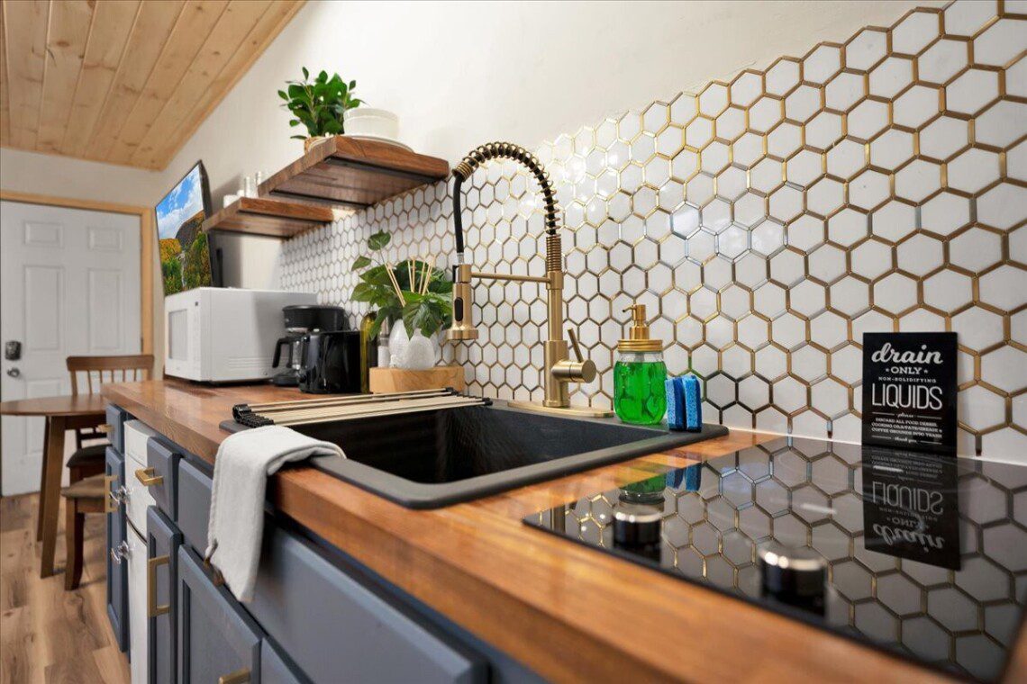 The brand new kitchenette is well appointed with a deep sink and plenty of space to prepare a meal